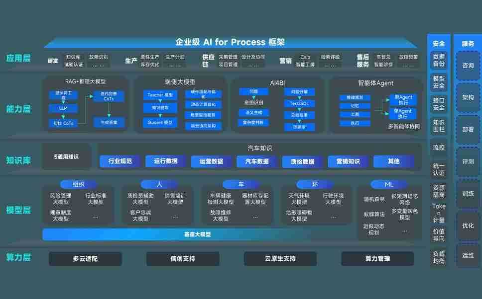 盛力国际问学智车解决方案是一套基于AI技术的汽车行业智能化系统,,,覆盖从底层算力到顶层AI应用的全栈方案。。方案由算力层、、模型层和应用层组成:算力层,,,,方案支持多种一体机配置,,,,具备云端灵活部署、、、多云适配以及动态优化计算资源的能力;模型层,,盛力国际问学平台版提供了企业级AI应用一站式构建与管理平台,,支持基于后训练强化技术的汽车企业专属模型的训练、、、评测和运营;应用层,,,盛力国际问学DeepSeek版提供包括超级员工、、、、智能招采、、智能营销、、、、智能客服、、、、AI for BI等一系列解决方案,,,,可助力汽车行业实现数字化转型,,,让管理更智能、、响应更敏捷。。。。